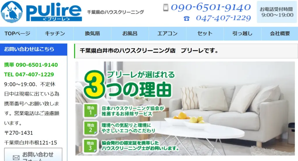 - クリーニング実施時間は9:00~20:00で土日祝も可
