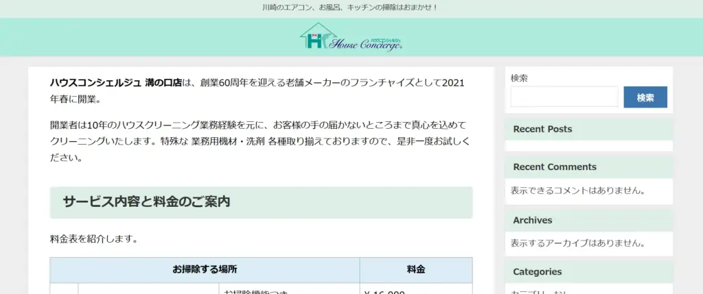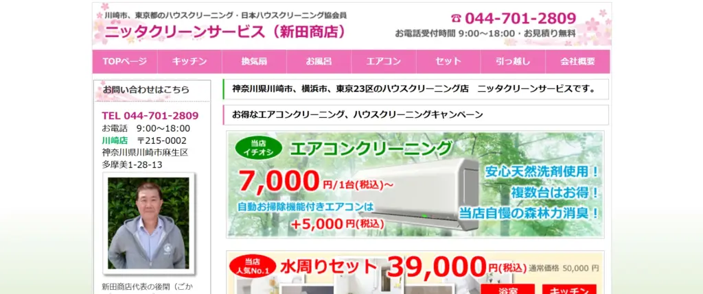 主な対応サービスエアコン・水回りなどのハウスクリーニング、全体清掃