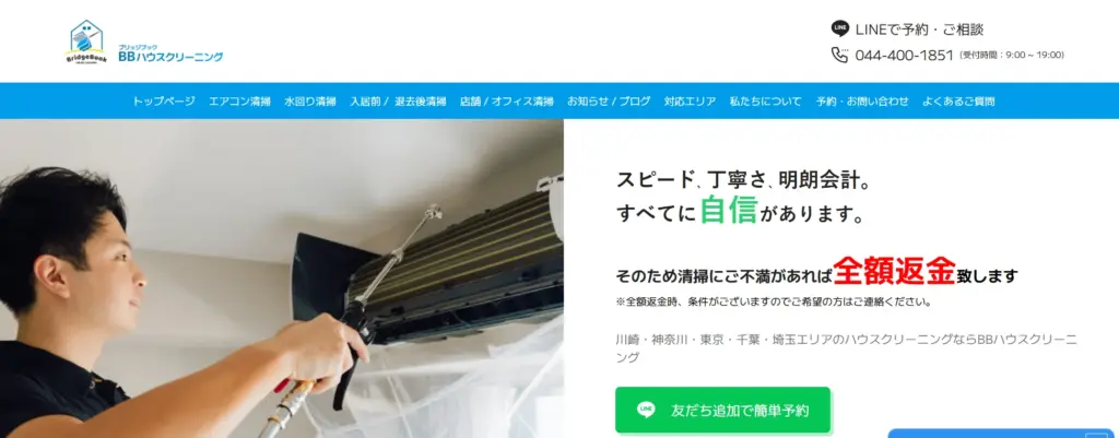 主な対応サービスエアコン・水回りなどのハウスクリーニング、全体清掃
