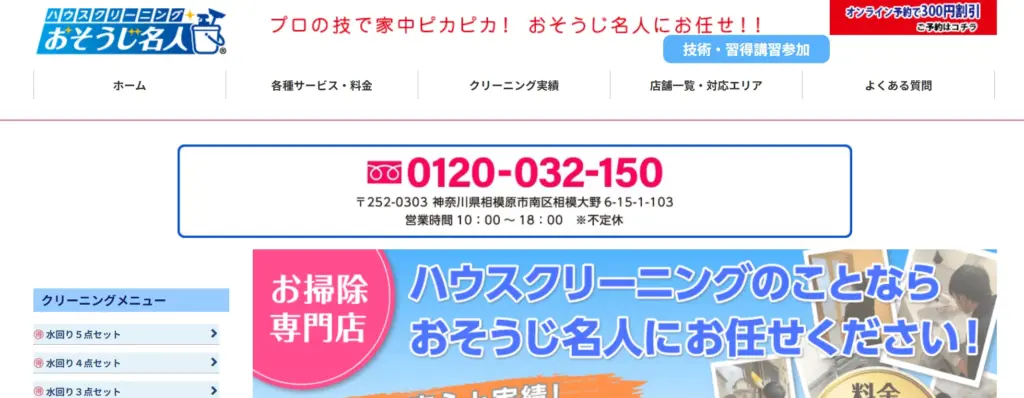 主な対応サービスエアコン・水回りなどのハウスクリーニング、全体清掃