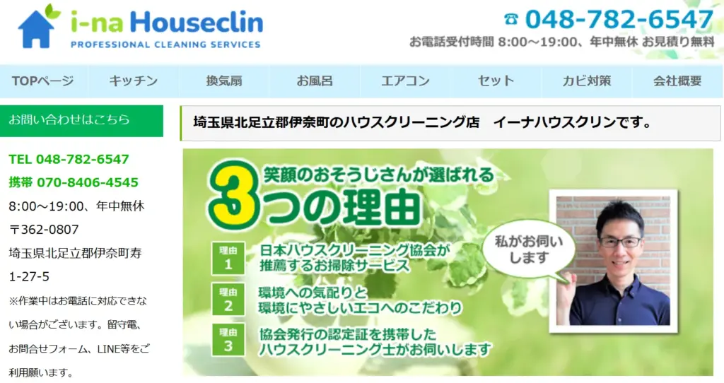 | 主な対応サービス | エアコン・水回りのハウスクリーニング |