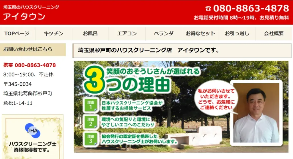 | 主な対応サービス | エアコン・水回りのハウスクリーニング |