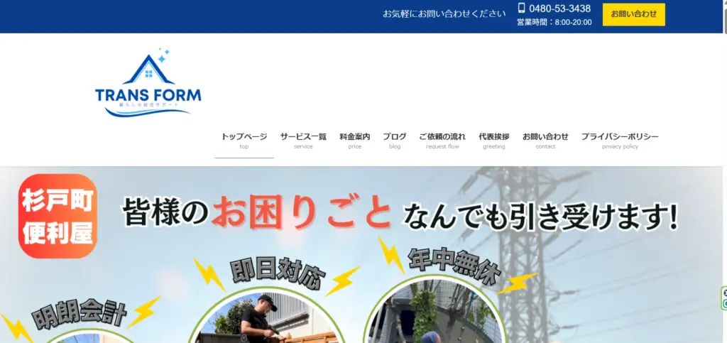 本社は東京都中央区にありますが、対応エリアは杉戸町や桶川市など、30以上の地域となっています。