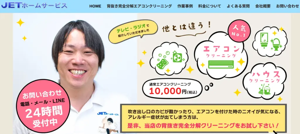 | 主な対応サービス | エアコン・水回りのハウスクリーニング |