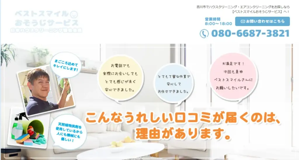 | 主な対応サービス | エアコン・水回りなどのハウスクリーニング、全体清掃 |