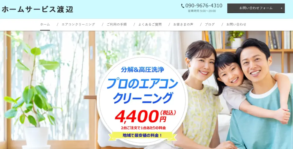 | 主な対応サービス | エアコン・水回りのハウスクリーニング |