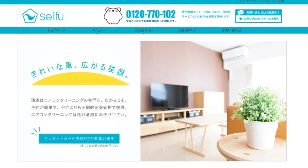- クリーニング実施時間は9:00~20:00で土日祝も可