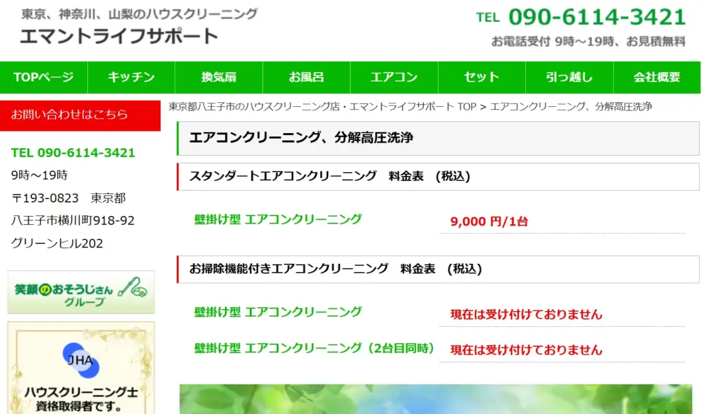 主な対応サービス | エアコン・水回りのハウスクリーニング |