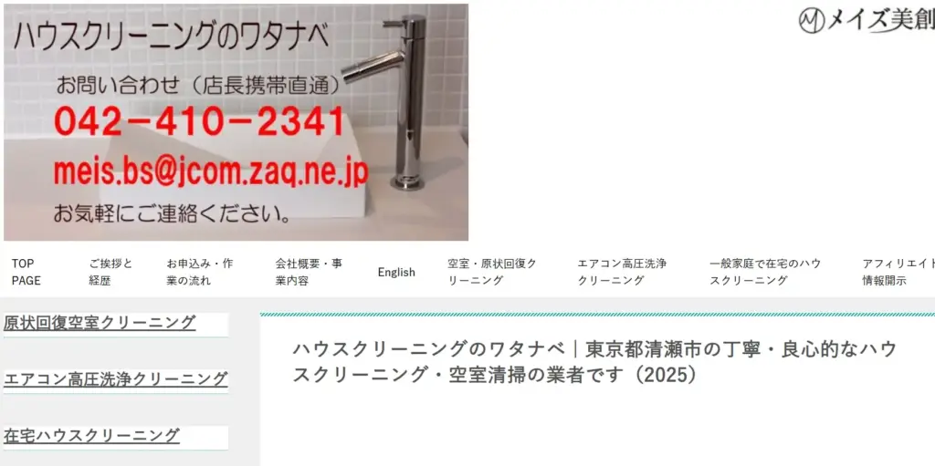 主な対応サービス | エアコン・水回りなどのハウスクリーニング、全体清掃 |