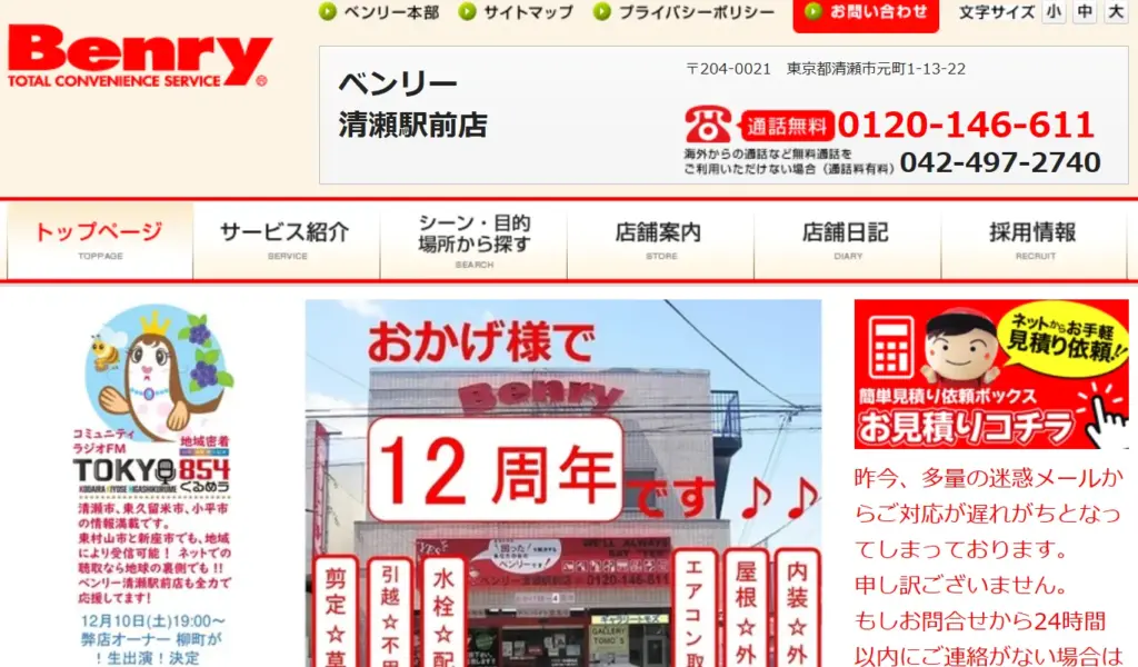 本社は東京都中央区にありますが、対応エリアは23区26市となっています。