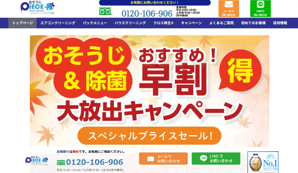 主な対応サービスエアコン・水回り・屋外などのハウスクリーニング
