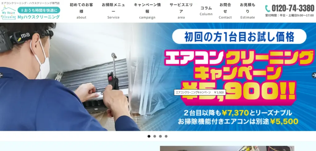 • クリーニング実施時間は9:00~20:00で土日祝も可