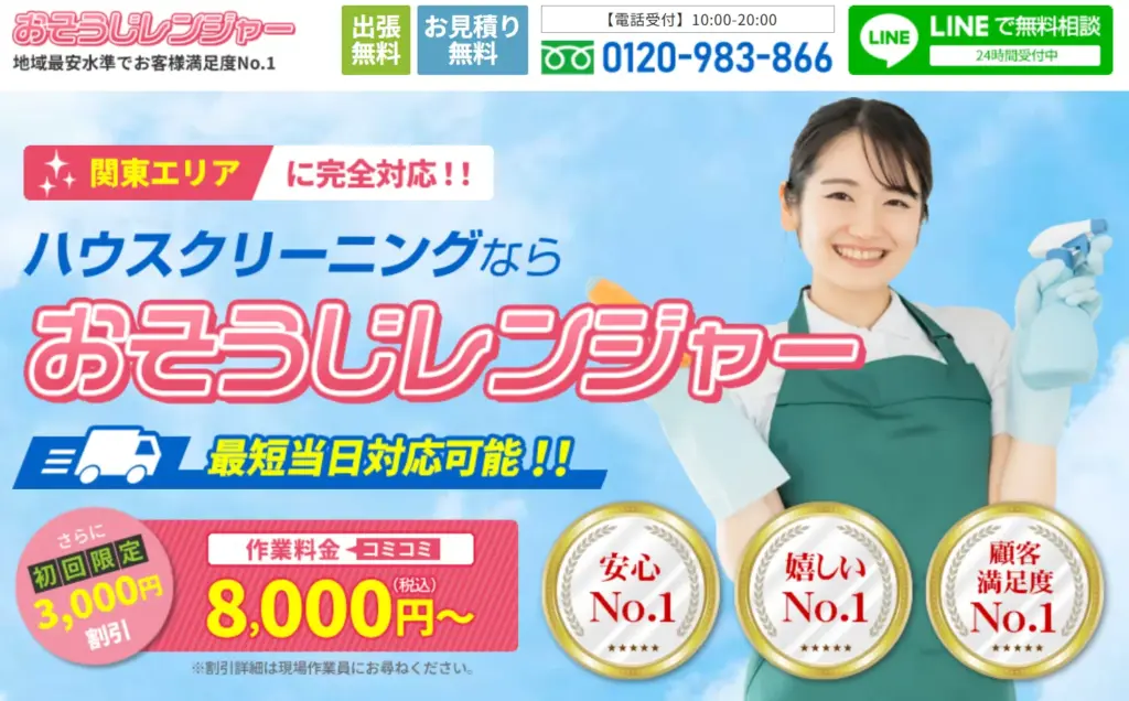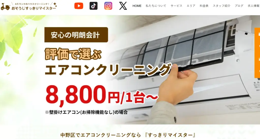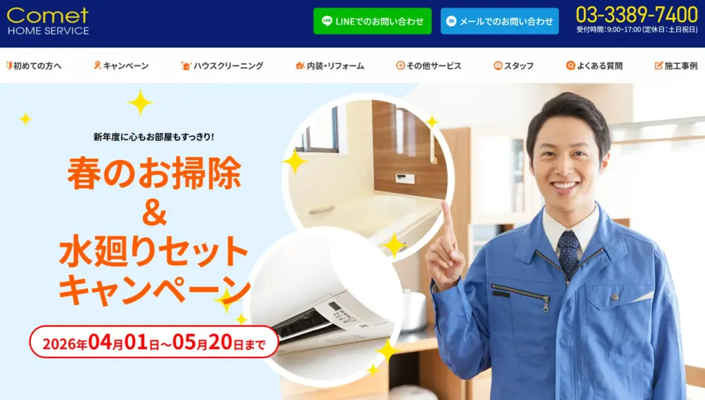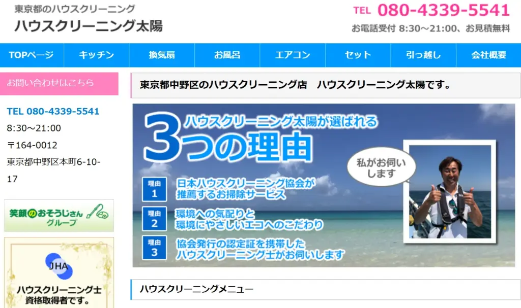 主な対応サービス | エアコン・水回りなどのハウスクリーニング、全体清掃 |