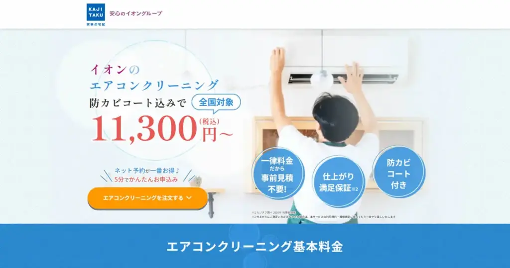 公式のエアコンクリーニングサービスは通常11,800円ですが、オフシーズンは10,800円の特別価格になるため費用が抑えられます。