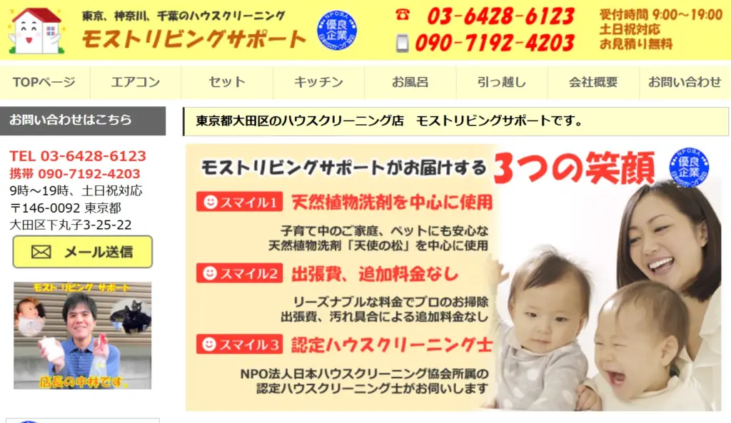 主な対応サービス | エアコン・水回りなどのハウスクリーニング、全体清掃 |