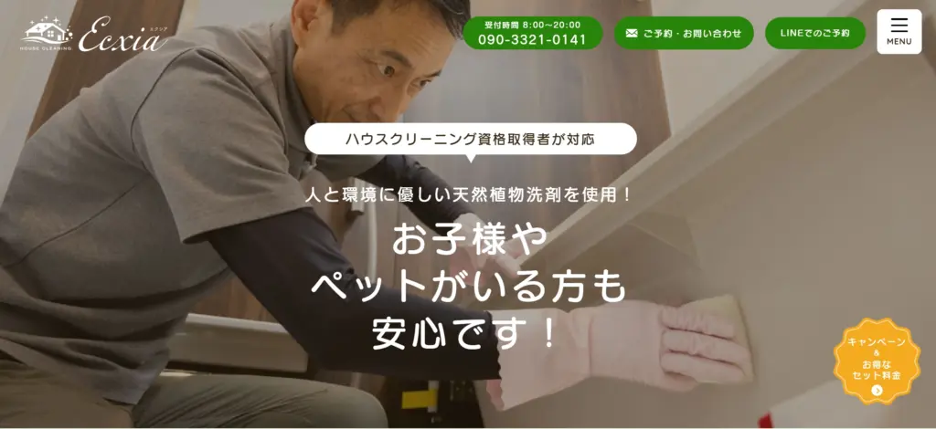 主な対応サービス | エアコン・水回りなどのハウスクリーニング、全体清掃 |