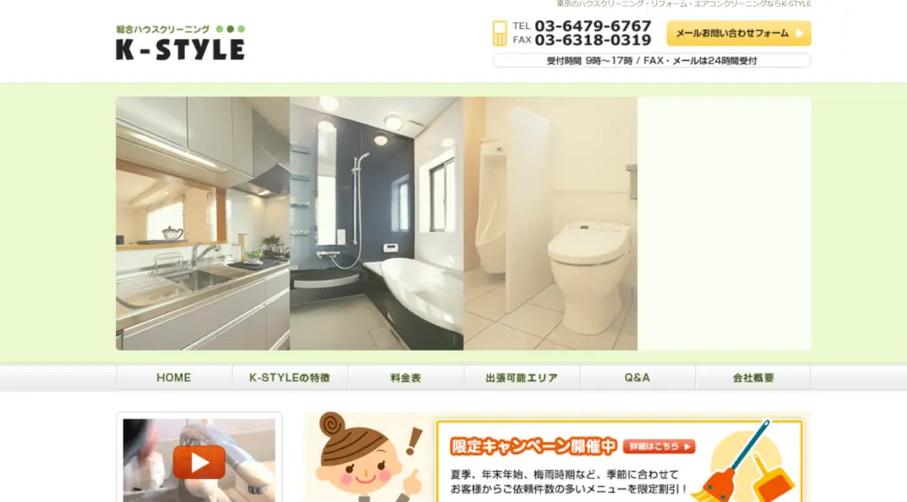主な対応サービス | エアコン・水回りのハウスクリーニング |
