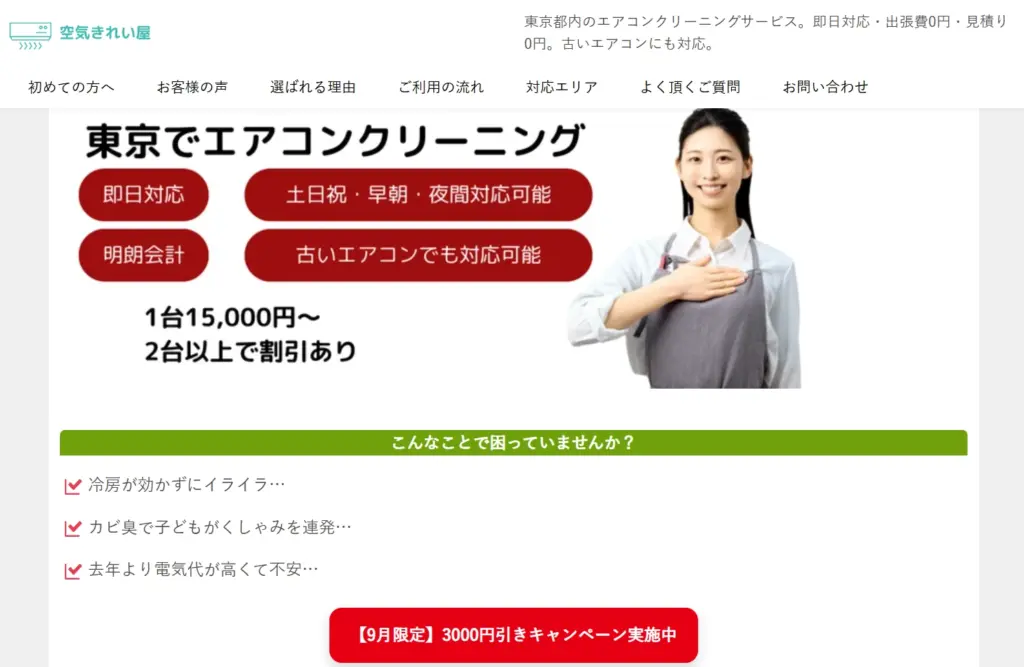 - クリーニング実施時間は9:00~20:00で土日祝も可