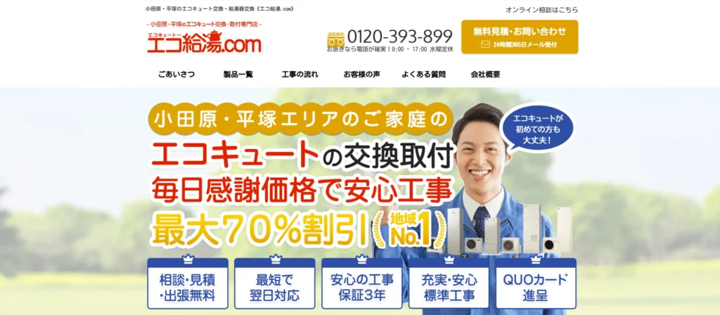 エコキュート交換に特化しているため、機種の知識が豊富で対応が速く、価格も比較的リーズナブルです。