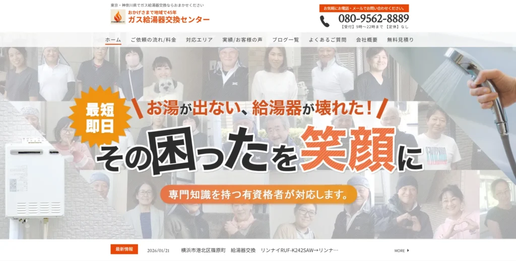 ガス会社や量販店より対応が早く、ネット購入よりトラブルが少ない点も選ばれる理由です。